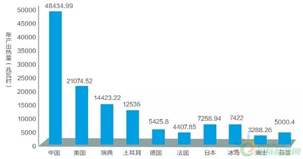 世界地热利用前10名国家对比图