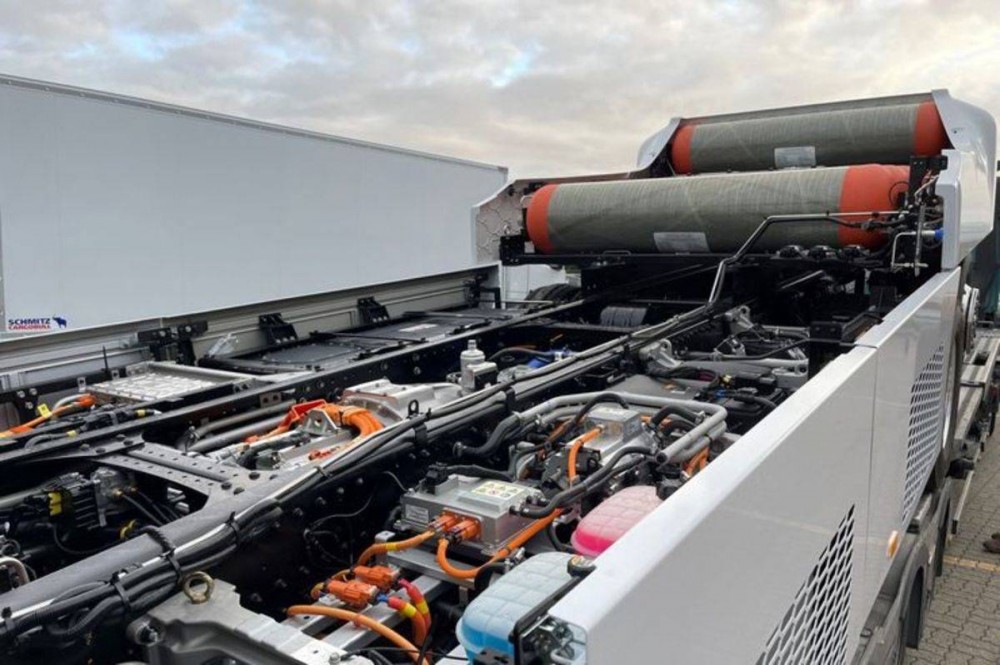 而在电池组的部分,创虎载货车搭载了三个容量为24.4kWh的高压电池组,总容量为73.2kWh,电池组可以为创虎载货车提供最大400km左右的续航里程,可以覆盖一部分欧洲国家之间的跨过运输需求。而且氢燃料电池卡车不同于充电车型,进入加氢站之后仅需8-20分钟左右的时间就可以完成加氢,几乎和燃油卡车一样便捷。