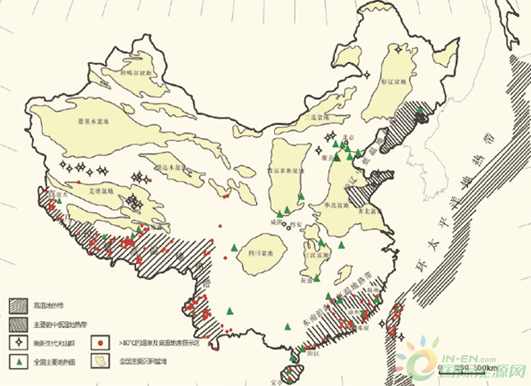 ①高温(>150℃)对流型地热资源,这类资源主要分布在西藏、腾冲现代火山区及台湾,前二者属地中海地热带中的东延部分,而台湾位居环太平洋地热带中。