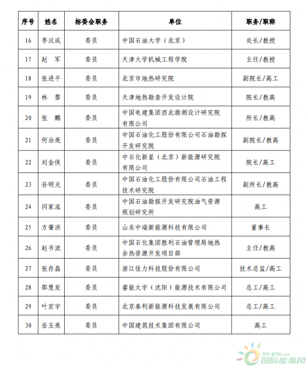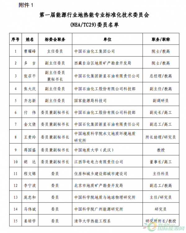 1.第一届能源行业地热能专业标准化技术委员会(NEA/TC29)委员名单