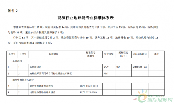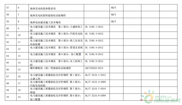 三、同意能源行业地热能专业标准化技术委员会主要负责能源行业地热能专业标准的归口管理,开展地热资源勘查与评价、地热钻完井工程、地热供暖与制冷、地热发电和采出水综合利用及资源保护等领域标准化工作,并研究建立地热能专业技术标准体系表(见附件2)。