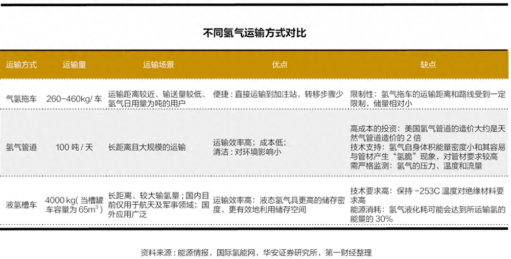 国金证券数据显示,运输用储氢瓶从20MPa提升到30MPa、50MPa,长管拖车载氢量可从300kg左右增至600kg左右、900kg左右。