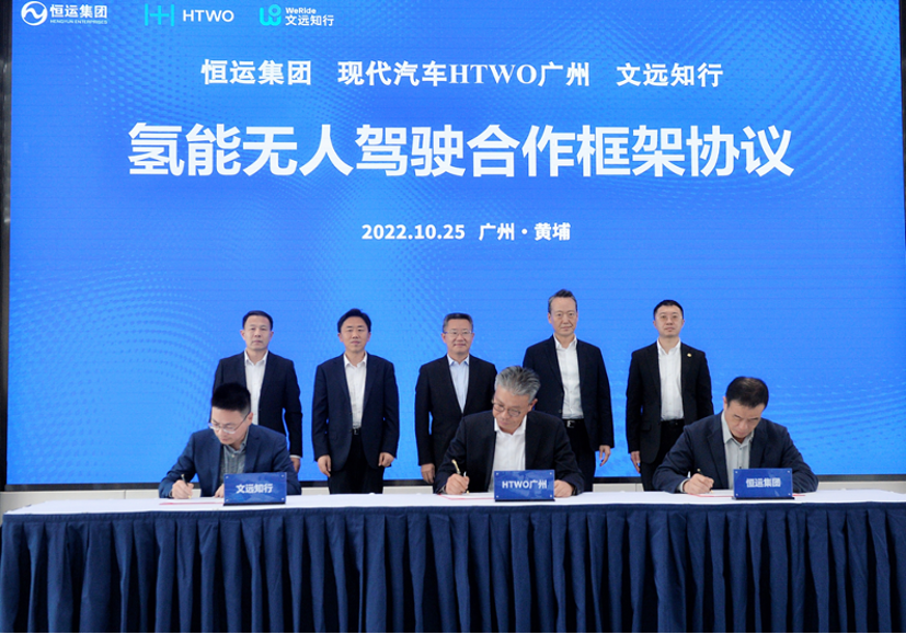 10月25日,恒运集团与现代汽车氢燃料电池系统有限公司、广州文远知行科技有限公司签订氢能无人驾驶合作框架协议。三方将联合打造全球首个无人驾驶氢能汽车示范区,积极在氢燃料电池无人驾驶环卫车等工程车辆及网约车领域创造需求,合作推动车辆开发制造、示范推广运营等业务。