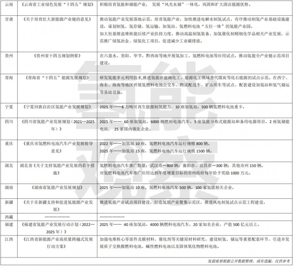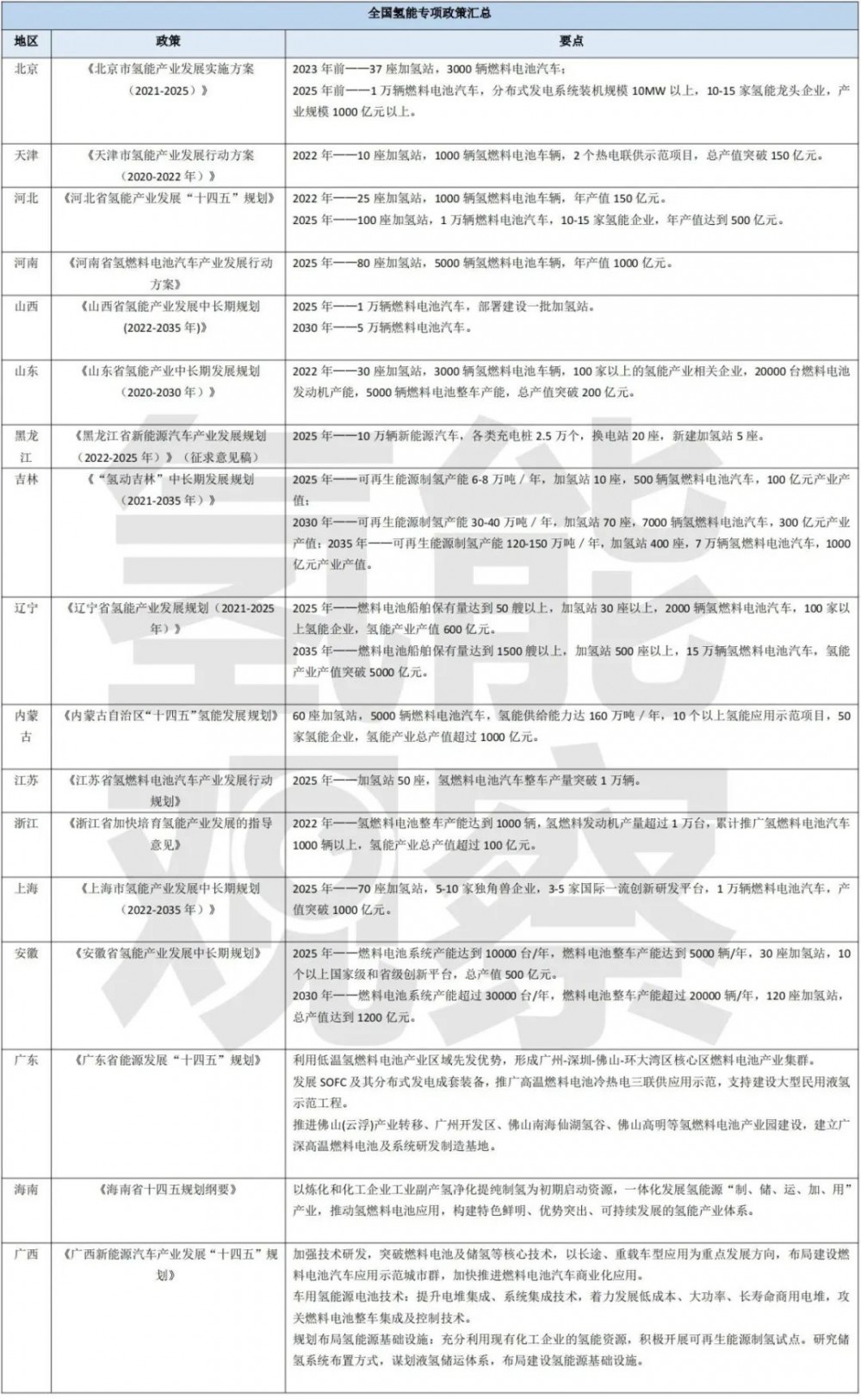 <span style="color: rgb(34, 34, 34); font-family: system-ui, -apple-system, BlinkMacSystemFont, "Helvetica Neue", "PingFang SC", "Hiragino Sans GB", "Microsoft YaHei UI", "Microsoft YaHei", Arial, sans-serif; letter-spacing: 0.544px; text-align: justify; background-color: rgb(255, 255, 255);”>进入2022年,内蒙古、辽宁、吉林等省(地区)陆续推出氢能产业发展规划或发展行动方案,据氢能观察统计,全国已有20省(自治区、直辖市)发布氢能专项政策,统计如图:
