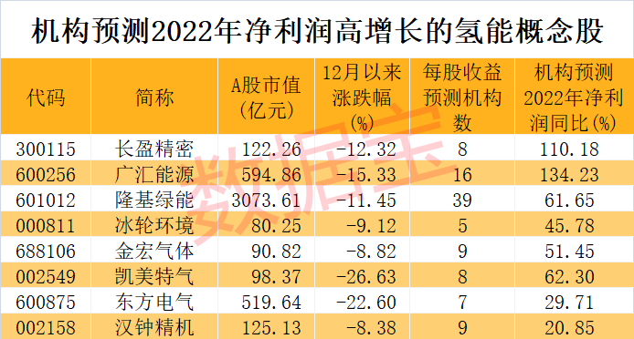 哪些概念股业绩值得期待?根据5家以上机构一致预测,2022年净利润增速有望超20%的有8股。广汇能源、长盈精密获机构预测净利润翻倍增长。最新收盘价与年内高点相比,长盈精密、广汇能源、隆基绿能回撤幅度均达到40%以上。