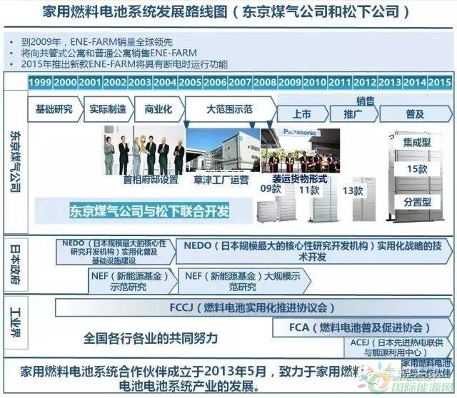 ENE-FARM项目的成功依赖于企业、政府和工业界的通力配合。在1999年开启基础研究后,政府看中了这个模式对于能源资源匮乏的日本的巨大作用,能效的提升不仅降低了一次能源消耗,独立的能源系统也能增加系统的稳定性和安全性。为了促进这一模式的落地,日本政府首先投入大量的资金来支持关键技术的攻关,在产品出现后,首相官邸还率先安转这一设备,为这个模式站台.