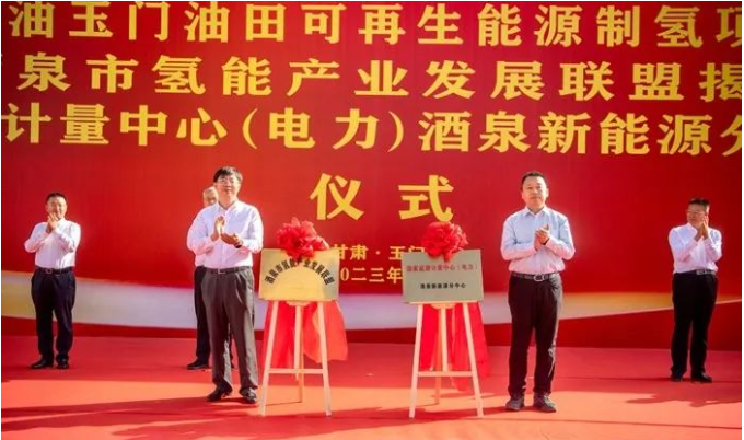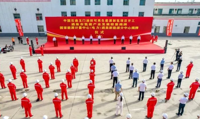 8月8日,中国石油天然气集团公司首个可再生能源制氢示范项目开工暨酒泉市氢能产业发展联盟、国家能源计量中心(电力)酒泉新能源分中心揭牌仪式在玉门油田举行。