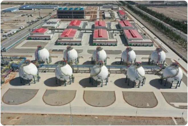 中国石化新疆库车绿氢示范项目于2021年11月30日正式开工建设,包括制氢工程、输变电线路、300兆瓦光伏发电厂三个部分,项目采用电解水制氢工艺,制氢厂年耗电量约10亿千瓦时,储氢规模约21万标方。项目产出的绿氢经氢气储罐、压缩机升压后通过百万吨乙烯厂际管廊输送至塔河炼化,全部用于炼油生产加氢,替代原有的天然气制氢。项目自开工建设以来,严格按照工程节点科学施工,已完成投资26亿元,厂房、辅助设施已全部建成,设备已全部安装到位,正在进行分装置、分步骤进进行调试。
