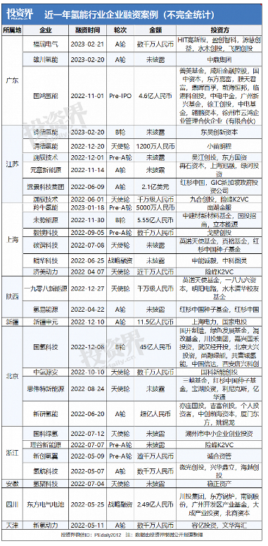 据投资界VC情报局不完全统计,近一年氢能行业融资事件38起,已披露金额超74.72亿元,单个项目融资亿元以上的案例比比皆是。