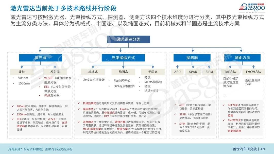 车载激光雷达可按多种维度进行分类,技术路线众多。盖世汽车通过梳理各种技术路线,不同的技术路线有自身的优势,也不可避免地出现一定的短板。