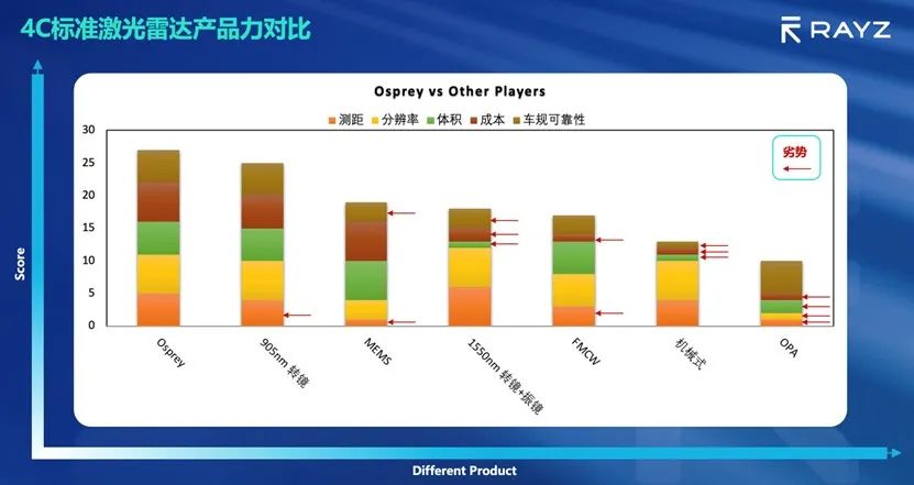 在陈如新看来,成本可控有两层含义,其一为当前的成本合理,其二为成本可降。Osprey H2相比同类主流905nm产品,收发系统减少了30%以上核心光电器件使用数量,相比1550nm激光雷达产品,Osprey H2实现60%以上的成本降低。“此外,Osprey H2在规模化量产的情况下,完全可以达到终端价格要求,并能满足年降要求。”陈如新表示。