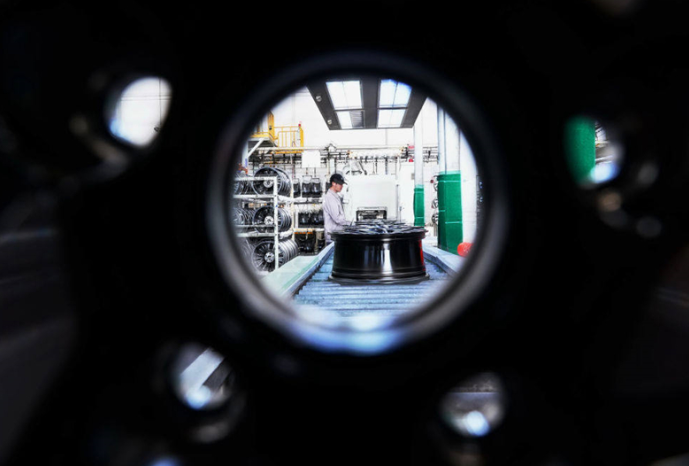 12月2日,工人在河北省秦皇岛经济技术开发区一家汽车轮毂企业的生产线上工作。新华社记者 杨世尧 摄