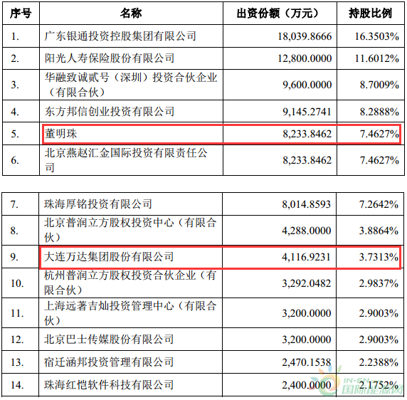值得注意的是,公告同时披露珠海银隆最新股权结构。公告显示,董明珠持股比例达7.4627%,万达集团持股3.7313%。