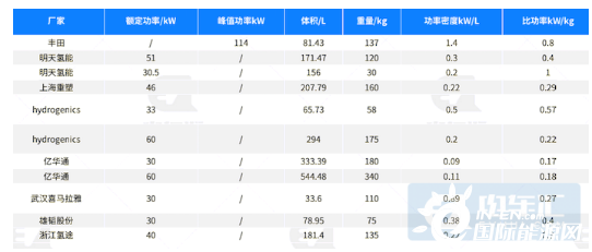 燃料电池的性能主要包括功率密度、寿命、成本等指标,记者依据新能源汽车推荐目录相关参数了解到,目前国内燃料电池系统成熟产品在技术指标上与国外领先产品存在较大差距。