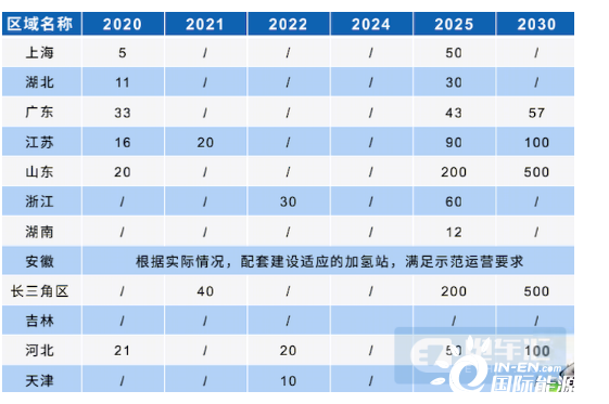 但是今年的补贴政策中并未提及燃料电池汽车购置补贴,只是提出将选取部分城市开展示范应用,并采取“以奖代补”的形式对示范城市给予奖励。国家政策尚未明确出台,很多地方政府已经给出了配套政策来跟进,不过从今年已经出台政策的地区来看,主要还都是在支持建设加氢站,并且规划了加氢站的建设数量。