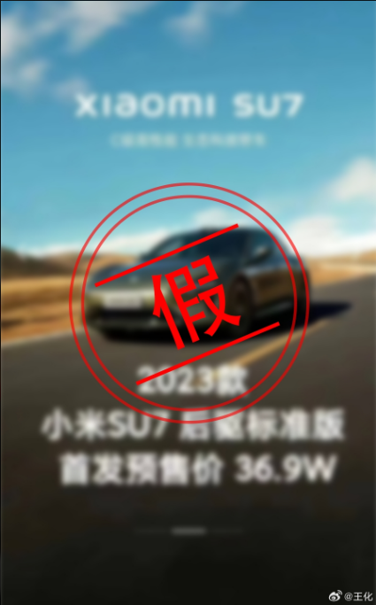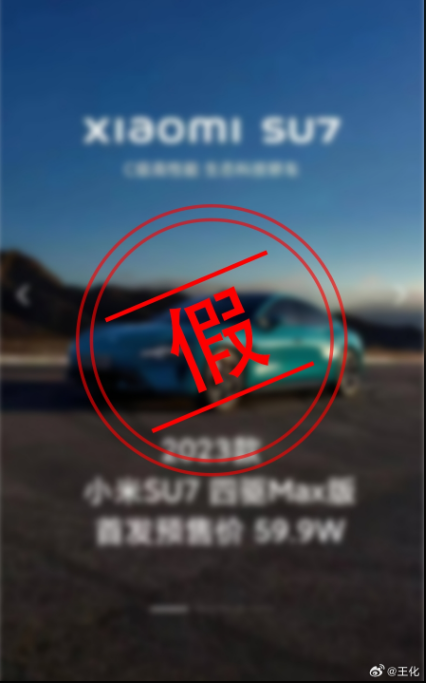 近期甚至有网友制作了类似小米官方风格的价格海报,其中标注小米汽车SU7后驱标准版首发预售价9.9万、小米汽车SU7四驱Max版首发预售价59.9万等。