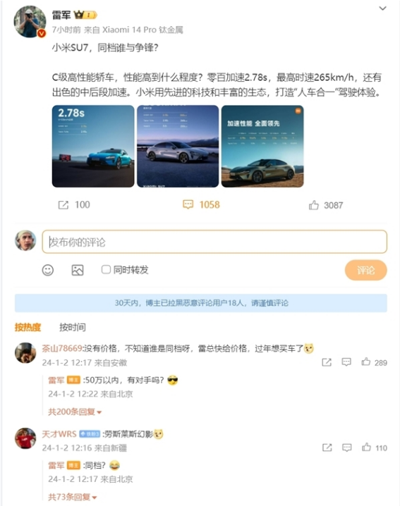 1月3日消息,小米汽车SU7自从召开首场发布会以来热度十足,网络上各种传言不断,包括供应链信息、价格信息等等。