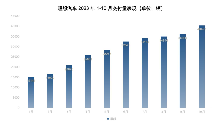 从全年目标来看,理想汽车1-10 月累计交付 28.5 万辆,目标完成率 95%。按照理想汽车交付趋势来看,完成全年交付目标显然不成问题,但在价格战、新品上市等市场因素包围下,理想汽车要保持现有势头的同时不断攀高,难度并不小。