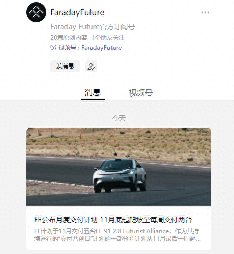 10月30日消息,法拉第未来宣布计划于11月交付五台 FF 91 2.0 Futurist Alliance。