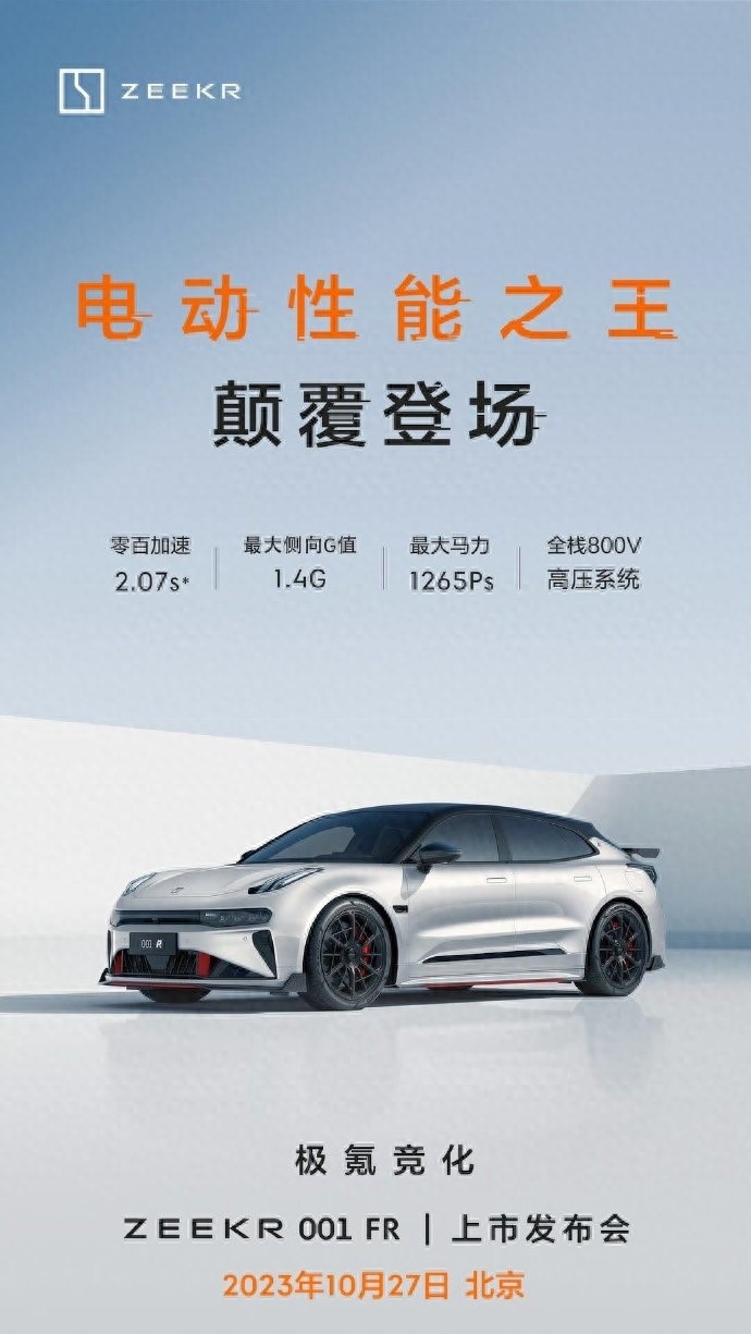 10月24日消息,极氪汽车今日宣布,首批 001 FR 量产车型现已下线,该车定位“豪华纯电超跑”,将于 10 月 27 日 19:30 在北京正式发布。