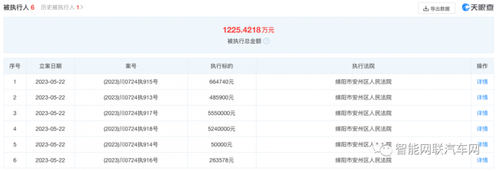 至于威马汽车科技(四川)有限公司,天眼查信息显示,截至发稿前,威马汽车科技(四川)有限公司被执行人6条,被执行总金额为1225.4218万元,开庭公告为5条,法律诉讼3条。
