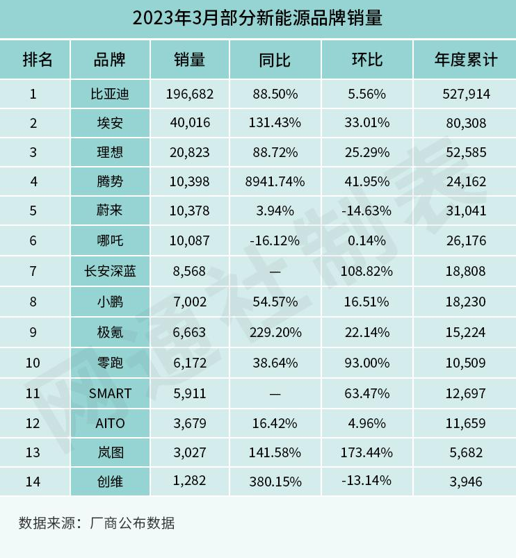 另外,极氪 3 月销量同比增幅超 200%,埃安同比增幅超 100%,从上述车企数据表现不难看出,传统车企旗下的新能源品牌正处高速增长阶段,同比方面能验证传统车企新能源品牌走向成熟的速度要快过当时造车新势力的发展。