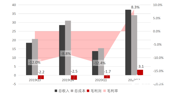蔚来二季度实现营收37.18亿元,同比大增146.5%,较一季度环比增长171.1%,而实现这些收入耗费的总成本约34亿元。通过最简单的数学减法公式可得,二季度蔚来汽车的毛利润额为3.13亿元,于是乎其毛利率从去年同期的-33.4%提升至8.4%,能想象到李斌脸上挂满了老父亲般的笑容。