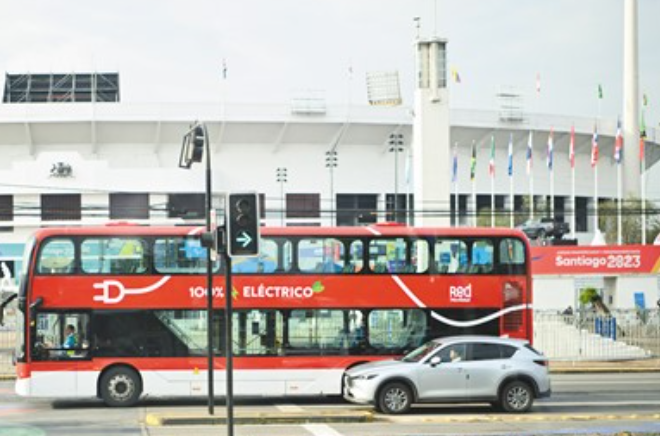 2023泛美运动会日前在智利圣地亚哥举行,圣地亚哥520路公交路线是为此次运动会特别开设的,负责将前来观会的各国观众运往比赛场馆。这条路线的10辆双层新能源公交车由中国制造,向世界讲述着中国新能源公交车和圣地亚哥的绿色环保故事。