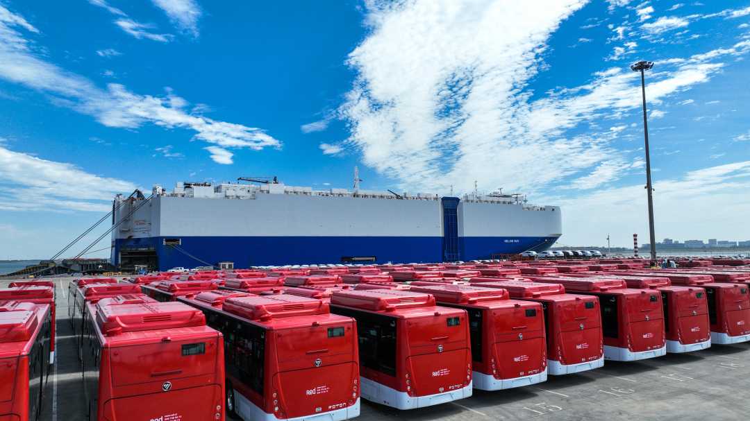 8月15日,100辆福田新能源大巴车在天津港环球滚装码头公司顺利装船,搭乘“海洛斯”号滚装轮驶往南美洲智利圣安东尼奥,创出了天津口岸出口国产自主品牌新能源大巴车历史新高。