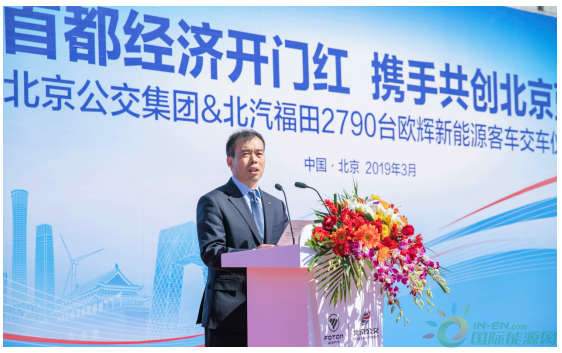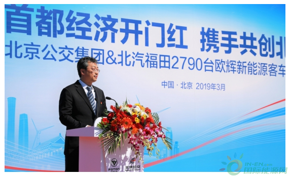 朱凯也在交车仪式上发表讲话,并谈及与福田汽车的战略合作伙伴关系:北京公交集团积极落实《北京市清洁空气行动计划》和《蓝天保卫战行动计划》,努力发挥国有大型企业主力军作用,将绿色公交作为集团“十三五”发展重点,大力推进新能源、清洁能源车辆发展,全力为减少PM2.5及各类有毒有害物质排放,打赢北京蓝天保卫战贡献力量。北汽集团是新能源汽车市场领先的国有大型汽车企业集团,更是公交集团最大的战略合作伙伴。2016至2018年,公交集团累计采购福田欧辉客车6466辆,采购金额达101亿元。随着此次2019中国新能源客车的交付,公交集团与福田汽车将进一步拓展合作领域、创新合作模式、扩大合作规模、共享发展机遇,携手开创共同发展繁荣的美好明天。