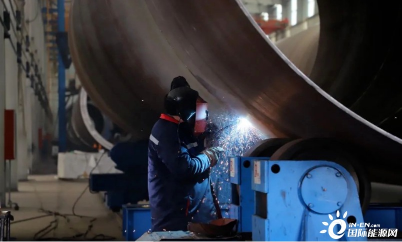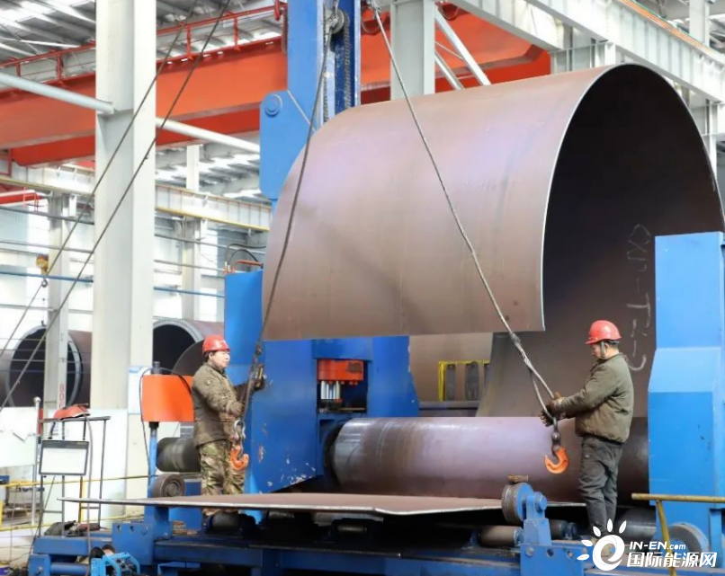 天能重工塔筒制造生产车间工人们生产热火朝天