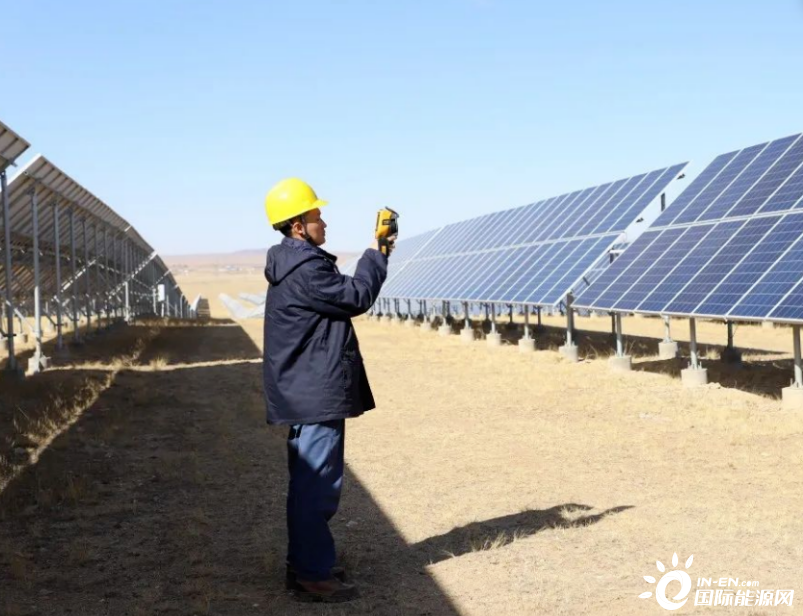 京能达茂旗傲都光伏发电项目工作人员巡检