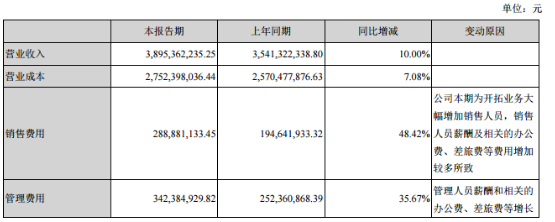 8月14日,阳光电源公布的半年报显示,报告期内,公司实现营业收入389,536.22万元,同比增长10.00%;营业成本为275,239.80万元,同比增长7.08%;销售费用28,888.11万元,同比增长48.42%;管理费用34,238.49万元,同比增长35.67%;经营活动产生的现金流量净额-214,501.12万元,同比下降126.98%;归属于上市公司股东的净利润38,297.34万元,同比增长3.75%。