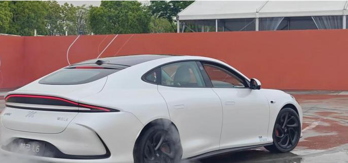4月23日,“寻找中国经济新动能”智己L6全球首试现场,智己L6正在展示低速漂移。 中新网记者 浦帆 摄