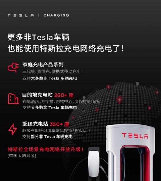 今年4月,特斯拉在中国大陆面向部分非特斯拉品牌电动车试点开放充电站后,再次扩大开放范围。