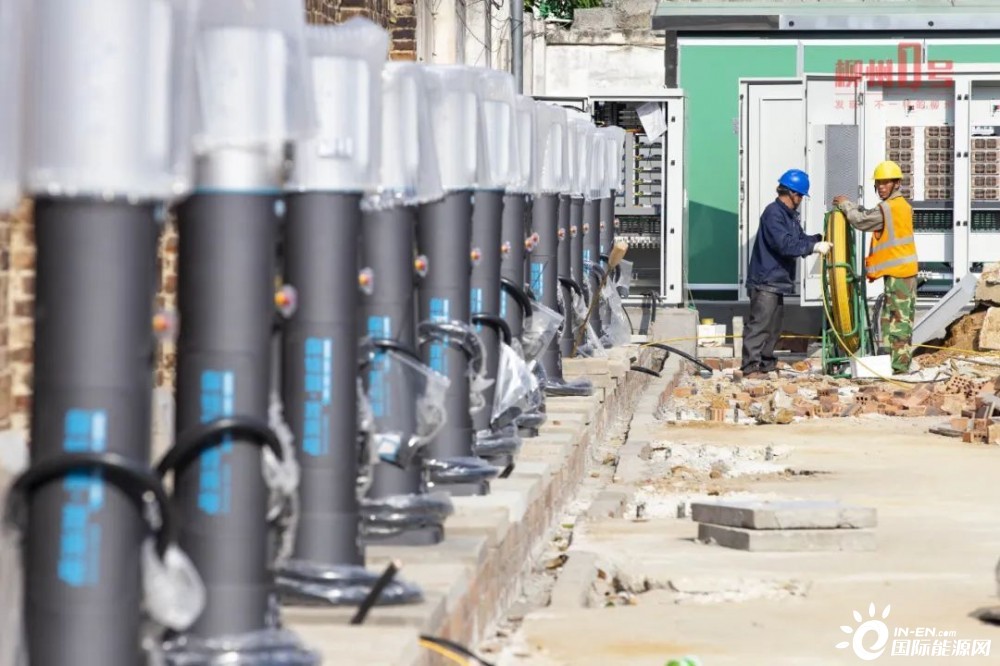 南环路一处新能源充电站正在加紧完成电缆敷设和设备安装。(全媒体记者 韦雨函摄)