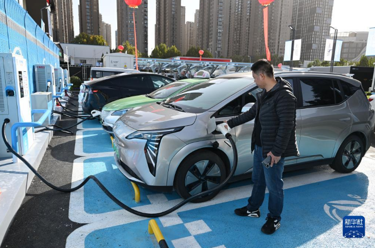 11月17日,市民在安徽石油大众综合能源站内为新能源汽车充电。 新华社记者 周牧 摄