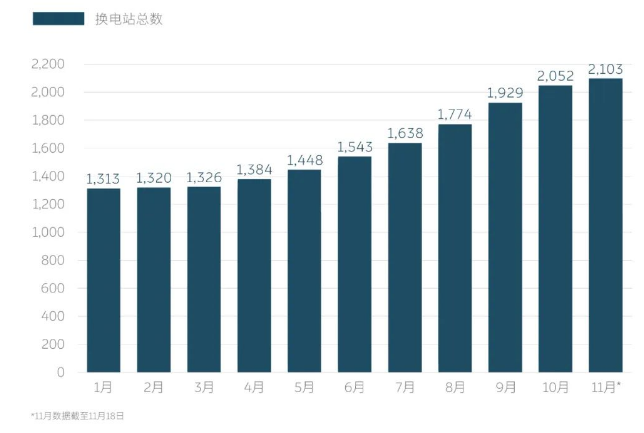 11月18日消息,蔚来汽车宣布,蔚来第2100座换电站于18日在G22青兰高速壶口服务区(青岛-兰州高速,服务区位于陕西延安宜川县)正式上线,至此全国范围内累计已建成 2103 座换电站和 19824 根充电桩。