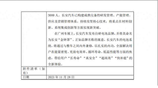 长安汽车已构建成熟完备的研发管理、产能管理、供应及营销管理体系,持续攻坚核心技术,将重点在材料创新、系统集成创新等方面实现新突破。