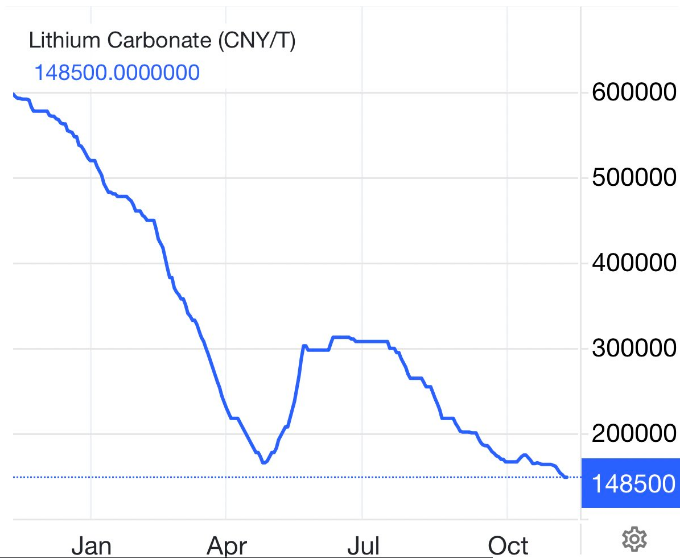随着明年锂供应量的增加,我们可能会看到价格进一步下跌,在需求方面,电动汽车销售的一些地区差异一直在拖累整个行业的情绪。