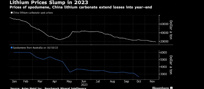 11月25日消息,根据彭博社报道,自 2023 年以来,用于生产电动汽车牵引电池和移动设备电池的锂化合物价格已经下降了 75%,且在可以预见的未来,锂价会进一步下跌。