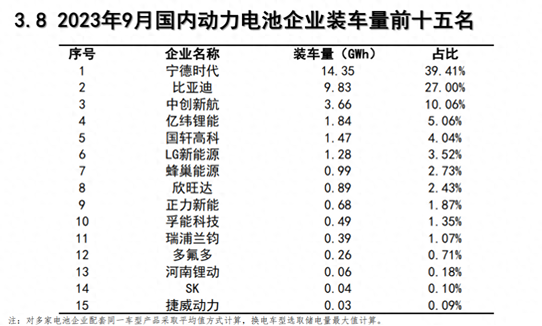 与此同时,宁德时代9月市占率为39.41%,这是其继去年3月后再度跌破40%,创下近17个月新低。而装车量位列第二的比亚迪市占率为27%,装车量为9.83GWh。