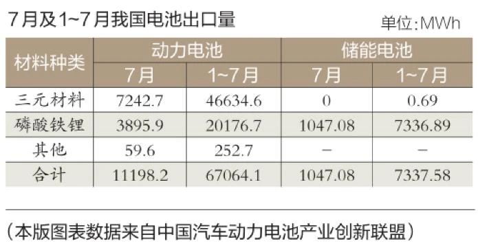 值得一提的是,从今年6月开始,联盟除了公布动力电池数据之外,还新增了储能电池数据。今年1~7月,我国储能电池销量为35.5GWh,其中磷酸铁锂电池销量为35.2GWh。从出口看,1~7月储能电池出口7.3GWh,基本为磷酸铁锂电池。目前,除了车用动力电池,储能电池也是宁德时代、亿纬锂能等各大电池企业聚焦的重点业务之一。