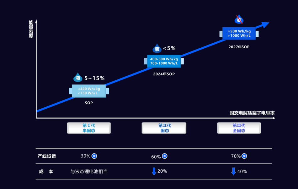 李峥指出,任何技术、产品都是不断迭代升级的。“比如液态电池,从1991年索尼推出液态电池,当时的单体能量密度才80多瓦时/公斤,到现在进阶到接近300瓦时/公斤,也是不断升级的过程,固态电池也是一样,作为新的赛道,不可能某个时间节点一次性的推出完美的解决方案,也是通过推出一个产品,结合市场不断提高制造能力、材料性能,不断升级、提高性价比,最终实现更加远期的目标。”
