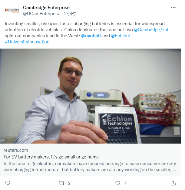 就全球电动汽车电池领域而言,诸如位于英国剑桥的 Nyobolt 和美国华盛顿州的 Woodinville 等初创企业都在研究新电极材料,希望将快速充电电池推向市场。
