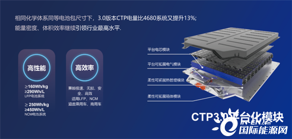宁德时代此前披露称,第三代CTP技术具备极速、无损、安全、高效等特点,能够适配磷酸铁锂和三元锂两种电池体系,对应能量密度分别达到160Wh/kg、250Wh/kg以上,继续引领行业最高水平。