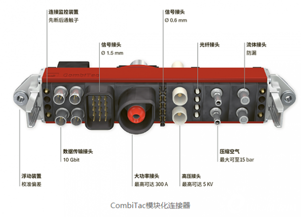 借助于在自动化测试领域的丰富应用,史陶比尔CombiTac模块化连接器可出色的满足电池包自动化测试需求。CombiTac采用独有的表带触指技术,可实现高达100,000次插拔寿命,单芯具有300A额定电流和1000V AC/DC额定电压,模块化设计可同时集成多种连接类型,如电流、信号、数据、同轴、热电偶、光纤、气体和液体等,具有高抗冲击性和抗震性,其100%定制化,满足精确尺寸要求。