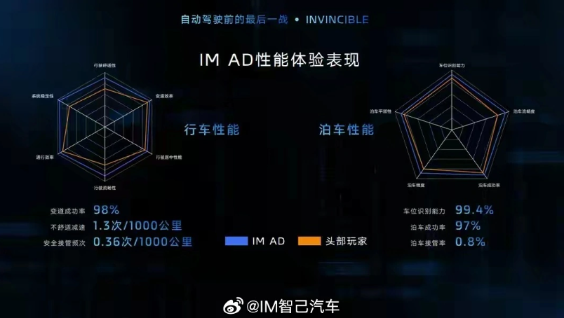泊车性能方面,IMAD的泊车接管率仅0.8%,远低于行业头部玩家;泊车成功率97%,车位识别率高达99.4%。