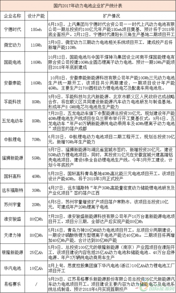 二是今年以来,国内不少动力电池企业扩产,对锂电负极需求大增。根据企业公开信息统计,截止至10月19日,国内动力电池扩产企业共包括:宁德时代、中航锂电、国轩高科、微宏动力、国能电池等16家电池企业宣布扩产,扩产产能总计超过86Gwh。(详见下表)