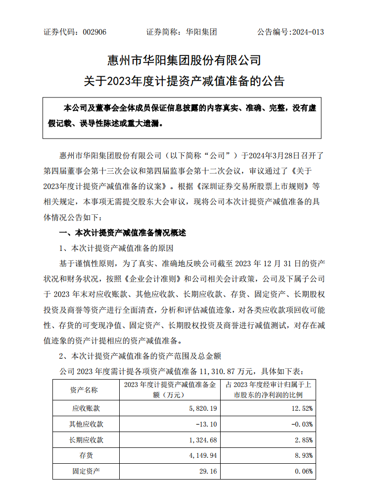 国际能源网获悉,近日,华阳集团发布公告称,本次计提减值准备金额合计约1.13亿元,考虑所得税的影响后减少公司2023年归属于上市公司股东的净利润9601.5万元,减少2023年归属于上市公司股东所有者权益9601.5万元。公司本次计提的资产减值准备已经会计师事务所审计。